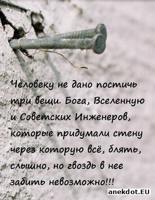 муж ударил по столу: -Кто в доме хозяин? жена: -Ну я, и че? -Ниче, просто так спросил )) |