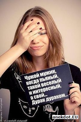 Знаешь, что у меня на тебя стоит? - Это типа комплимент, что ли? - Это типа мелодия на мобильнике, озабоченная ты моя. |