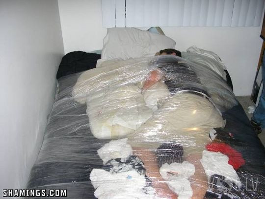 привёл домой, она пошла в душ.
