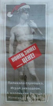 Третья дочь не подает признаков жизни 2 недели. Наконец приходит открытка и от нее. На ней дрожащей рукой нацарапано: South African Airlines. Мама хватает газету, в рекламном разделе находит: Южно-африканские авиалинии. 7 дней в неделю, 10 раз в день. По всем направлениям!!!  |