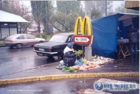 Кухня. Тишина. Открывается дверь холодильника. Оттуда вываливается огромная Мышь. Пузатая, с огромной "лицом", на шее намотаны сосиски, в одной руке кусок сыра, в другой тащит окорок, и медленно двигается в сторону норки. Подходит к маленькой норке. Перед норкой стоит маленькая мышеловка и в ней маленький засохший кусочек сыра. Подходит, смотрит и говорит:- Ну чеснэ слово, як диты! |