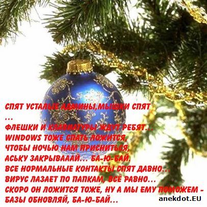Дело было 31 декабря. Часов десять вечера. Идем праздновать Новый Год. Несем три приличных сумки - понятно с чем. И вот, остается всего 5 минут пути, мы уже предвкушаем веселье, и вдруг.... Метрах в 10-и, мягко тормозит милицейская машина.... Оттуда выходит сержант милиции и идет к прямо к нам. Мысли, ессно, самые мрачные - в лучшем случае денег стрясет, в худшем - Новый Год в обезьяннике. А ведь как встретишь...